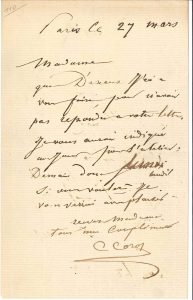 Camille COROT (1796-1875). L.A.S., Paris 27 mars, à une dame ; 1 page in-8.