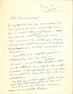 Henri MATISSE. L.A.S., 4 décembre 1940, [à son ami Henry de Montherlant] ; 2 pages in-4.