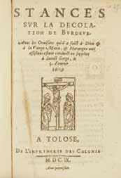 Toulouse - Impression de - Histoire Du Droit Stances sur la décolation de Burdeus avec les oraisons qu’il a faict à Dieu & à la Vierge Marie & harangue aux assistans estant conduict au supplice à