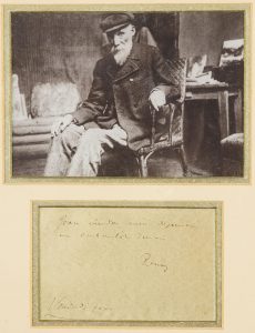 *Auguste RENOIR (1841-1919). L.A.S., Vendredi soir [27 novembre 1896], à Teodor de Wyzewa ; 1 page obl. in-12 (carte postale), adresse au verso (encadrée avec portrait photographique).