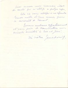 Il lui est pénible de savoir son amie aux prises avec les petits inconvénients de santé qu’elle a elle-même si souvent connus. « Je veux penser que vous aurez obtenu hier soir le succès que vous méritez. Vous me le confirmerez j’en suis certaine lorsque je vous verrai. Pour ce qui est de moi je souffre abominablement de la chaleur que du reste mon docteur m’a conseillé d’éviter. Je devrais pour lutter contre elle rester étendue sans sortir ni rien faire ». Elle n’ira pas donc la voir que « mardi (bain déjeuner ?) après quoi je me rendrai chez Mme Bruni. Je me serai reposée le lundi. Vous penserez que je suis sans gêne, mais je compte beaucoup sur votre indulgence pour excuser mon mauvais état de santé qui m’oblige à quelque repos »… Rare.