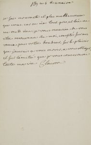 ancienne d’une lettre de Mlle Clairon à M. Dupoirier à Sully.
