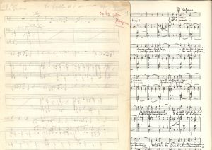 [Édith PIAF]. 18 manuscrits musicaux de chansons ou d’arrangements.{CR}On joint un ensemble de copies ou reprographies d’autres chansons, des parties d’arrangements (parfois avec lettre d’envoi), plus quelques partitions imprimées de...