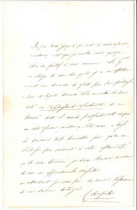 Son époux le général Aupick, alors ministre plénipotentiaire à Constantinople, soutient la veuve de M. Vernazza dont le fils a demandé de l’avancement. [7 août 1848]. Le Général la charge de lui annoncer qu’il a renouvelé sa demande « en l’appuyant fortement : il a trouvé tout le monde fortement disposé en votre faveur, Madame, votre mari a laissé des souvenirs trop honorables pour qu’on ne s’intéresse pas vivement à votre affaire »... [18 avril 1849]. Elle la rassure : la rumeur dont elle parle semble sans fondement et le Général a bien renouvelé et appuyé sa demande d’avancement pour son fils et son ami : « ce sont les seules qu’il ait faites et pour lesquelles il espère un résultat favorable »... Sous la signature « C. Aupick », on remarque les points maçonniques.