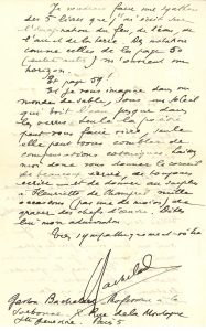 « Je suis tout ému que de votre lointaine Somalie vous m’envoyiez un si beau livre [La Forme réfléchie]. J’ai un plaisir quasi physique à le lire. Acceptant la systole et les diastoles de votre métaphysique je me suis rajeuni dans votre univers. On respire mieux quand la langue est mobile, libre, rendue à la jeunesse des mots. Avec vous, les images, enfin, commandent. Elles sont sûres de trouver un vocable sans usure. Je suis un bien vieux philosophe mais à vous lire je m’enchantais de parler. Vous avez la grande charité de faire croire à votre lecteur que si on ne le retenait pas il deviendrait poète. Je voudrais faire une synthèse des 5 livres que j’ai écrits sur l’imagination du feu, de l’eau, de l’air et de la terre »....