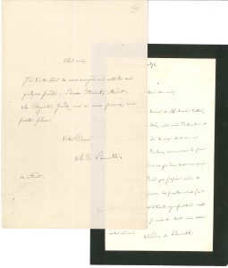 20 août [1866, à Arsène Houssaye] : il va bientôt lui envoyer « un article sur quelques poètes : Brises d’Orient, Mérat, Ch. Diguet. Gardez-moi si vous pouvez, une petite place » [article publié dans La Revue du XIX e Siècle, sous le titre « Les Poètes nouveaux »]... 16 mars 1876, réponse à des condoléances après le décès de sa mère (6 mars 1876) : « je sentais que vous étiez avec moi [...] et vous êtes de ceux dont je ne doute jamais. Ma douleur [...] est bien grande, car je dois tout sans exception à cette mère adorée que j’espère aimer et garder en moi toujours »...