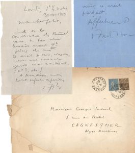 André BRETON (1896-1966). 2 L.A.S., 30 décembre 1929 et s.d., à Georges Sadoul ; 2 pages et demie in-8, 1 enveloppe.