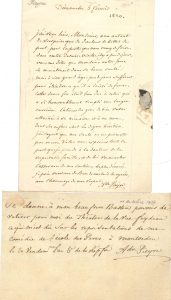 Montredon 20 vendémiaire VI (11 octobre 1797). « Je donne à mon beau-frere Bastin pouvoir de retirer pour moi du Théâtre de la rue Feydeau ce qu’il m’est dû sur les représentations de ma comédie de l’école des Pères »... 6 février [1820], à M. de Bure, qui vient de perdre son père : « à son grand âge, peu de jours suffisent pour éteindre ce qu’il a laissé de forces. Cette douce fin était bien due à celui qui a si honorablement rempli une longue carrière. L’estime des gens de bien reste attachée à sa mémoire, et à un nom, dont ses enfans sont les dignes héritiers »...