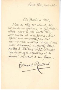 « Merci de votre très vibrant, très charmant, très affectueux, et trop flatteur article. Merci de votre amitié. Vous savez combien elle m’est précieuse. Nous espérons vous voir bientôt, pour vous remercier encore et mieux »...