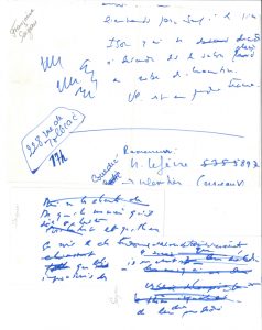 « Igor qui se décide à descendre dans le salon glacé en robe de chambre »... Notes sur cartes bristol difficilement lisibles…