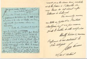 16 avril [1895]. Prière d’ouvrir la lettre qu’il a adressée à J. Huret au Figaro : il s’agit d’une rectification dont il demande l’insertion dans les « Échos ». « Mr Jules Huret a le tort pour un chroniqueur de grand quotidien d’accepter les renseignements qu’on lui donne sans contrôle et de les puiser à l’absinthe de cinq heures des soit-disant cafés littéraires du boulevard »... Jeudi matin [9 janvier 1896], à Jules Huret, le priant d’insérer cette annonce : « Suites de l’incident de mardi soir à la Comédie parisienne. La victime de l’agression de Mme Bob Walter, Mr Jean Lorrain, convoqué mercredi matin chez le commissaire du quartier de la Bourse [...] a consenti à retirer sa plainte contre une somme de cent cinquante francs que Mme Bob Walter s’est engagée a verser entre les mains de Mme Séverine pour les pauvres de son carnet »...