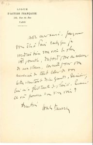 Charles MAURRAS (1868-1952). 3 L.A.S., Paris 1894 et s.d., à Jules Huret ; 6 pages in-8, un en-tête Ligue d’Action française.