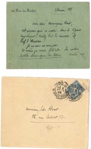 Jules RENARD (1864-1910). L.A.S., Paris 2 février 1895, à Jules Huret ; 1 page et demie oblong in-12 à son adresse 44, Rue du Rocher, enveloppe.