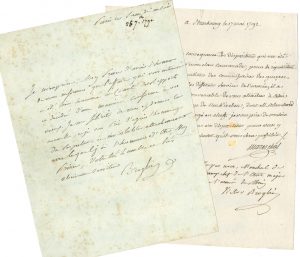 Paris samedi soir [25 septembre 1790], à un Prince : « l’affaire qui vous intéresse a été bien examinée au Comité des Rapports et décidée d’une manière conforme à vos vœux. Je me félicite de vous en donner la nouvelle »... Strasbourg 17 mai 1792. Sous une l.a.s. de service de Mareschal, attachant son camarade Petigny aux fonctions de commissaire de guerre au camp de Neukirchen : « Vu par nous, Mareschal de camp chef de l’Etat major de l’armée du Rhin Victor Broglie »...{CR}On joint une P.S. du général Nicolas-Joseph Maison : copie certifiée conforme d’un certificat de service militaire délivré par le maréchal de Broglie, en faveur du comte Dessöffÿ (Pyrmont 17 mai 1798).