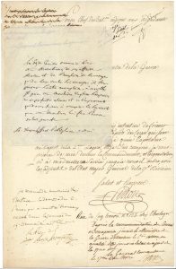 Apostille autographe signée peu après le 18 brumaire (9 novembre 1799) sur une pétition signée du chef de bataillon Perron demandant au général Berthier, ministre de la Guerre, de lui donner le commandement du 3e Bataillon des dépôts de l’Armée d’Orient qu’il s’apprête à former, ou bien de l’adjoindre à l’État-major de la 17e Division. Lucien Bonaparte, en bas de la lettre, recommande à Berthier « la demande du C. Perron qui a montré beaucoup de zèle dans la journée du 19 brumaire à St-Cloud » ; une autre apostille est signée par le général (et futur marécahl) Lefebvre. –Portland Place, 5 mai, au géologue anglais Roderick Murchison. « Le Pr. de Canino remercie bien Mr Marchison » pour l’envoi de son ouvrage, et l’assure qu’il aura toujours plaisir à recevoir les savants qu’il voudra bien lui présenter...{CR}On joint une curieuse l.a.s. de son fils Charles-Lucien Bonaparte à Oscar de Vallée, Paris 23 novembre 1850, au sujet de sa candidature à l’Académie des Sciences.