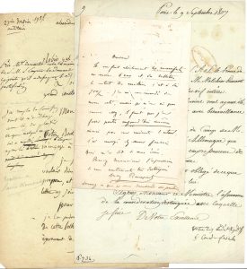 Louis Bonaparte (apostille autogr. en marge d’une l.a.s. du gal Robin, Alexandrie 16 pluviose XIII [5 févr. 1805]). Cardinal Joseph Fesch (l.s., 9 sept. 1807, au général Clarke). Félix Bacciochi, prince de Lucques et Piombino, mari d’Élisa Bonaparte (l.s. « Felix », Florence 13 oct. 1812, au duc de Feltre). Prince Napoléon (l.a.s. « Nap. Bonaparte », vers 1849, à propos de manifestes et de bulletins pour des élections). Félix comte Bacciochi, neveu d’Élisa Bonaparte, premier chambellan de Napoléon III (l.a.s., Tuileries 10 déc. 1855, à Costa). Louis-Napoléon Bonaparte (l.a.s. « Louis-Napoléon », Prangins 11 juillet 1911, réponse à des condoléances suite au décès de sa mère la Princesse Clotilde).