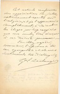 Tunis 9 mars 1885, à un rédacteur de La France, remerciant pour un article sous pseudonyme, qui « renferme des appréciations très justes, extrêmement exactes sur l’Algérie, et je l’approuverais complètement, n’étaient les éloges par trop exagérés que vous voulez bien décerner à ma modeste personne »... Londres 14 août 1889 (le jour même de sa condamnation par la Haute Cour, le rendant inéligible), à son cher Nicot : il compte sur son dévouement pour se présenter au poste d’honneur contre Floquet : « vous mènerez une campagne brillante à l’honneur du Parti national que vous avez toujours si bien servi. [...] tous nos journaux vous soutiendront et vos frais seront couverts »...