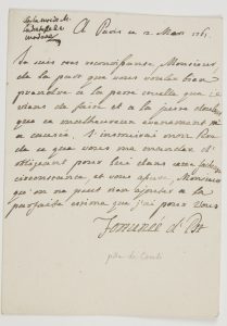 émigra sous la Révolution et mourut à Venise. L.A.S. « Fortunée d’Est », Paris 2 mars 1761 ; 1 page petit in-4.