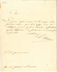 Géraud-Christophe-Michel DUROC (1772-1813) Duc de Frioul, général, Grand-Maréchal du Palais. L.A.S., 13 germinal X (3 avril 1802), au citoyen Joseph Bonaparte ; 1 page in-4.