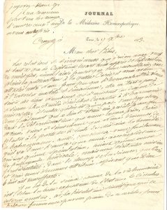 Gaspard Astrié (2, Toulouse 1834, évoquant le Dr Hahnemann, « l’anarchie intellectuelle qui règne aujourd’hui en médecine », l’homéopathie qui attire les « amis du progrès », et posant comme grand problème de la science : quelle est la nature de l’être ?). Léon Brothier aîné (Toulouse 1835, s’enquérant des développements les plus récents de l’homéopathie et son application à la pratique vétérinaire). Léon Simon (à en-tête du Journal de la Médecine homœopathique, Paris décembre 1833, au sujet de la diffusion de son journal, les liens de la « révolution scientifique » de l’homéopathie avec le saint-simonisme, Paul Curie qui est venu soutenir l’homéopathie à Paris).