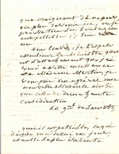 Malgré sa blessure et son infirmité, il avait projeté de se rendre à Paris dans l’espoir de le rencontrer, mais il est finalement resté. Il ajoute : « Quoi il est possible, ce qui déchire mes derniers jours et aussi la plus évidente justice qui ait jamais existé, après 4 ans de promesses positives ? Il est vrai M. Duchatel va jusqu’à vouloir déshonnorer le Cte de La Tour, il est vrai que ce n’est pas un service qu’il se rend ».