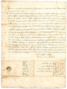 Il a trouvé ici leur cousin le chevalier Forbin, « de si bone sorte et sy bon parant que quant il fut notre propre frere il ne sauroet mieulx fere pour moy quil a fayt et par son moyen ay eté ressu en ranc de chevalier »... Il prie son frère de le remercier et le faire remercier par M. de Soulliers [Louis de Forbin de Solliès, ambassadeur à Rome]. « Il est antré au servisse de monsgr notre grant metre et sy asperranse den avoer quelque bien et Dieu luy en doivt la grace car il le vault »... Lorsque Merles est arrivé, il a trouvé leur cousin « tant pouvre tant mal accoutré que cest merveilles et quasy demi dessespere », mais depuis son entrée au service du Grand Maître, Forbin s’est fort réjoui, et M. de Solliès lui a promis, de Rome, que dès qu’il sera arrivé en Provence, il le fera payer ; Merles le supplie cependant de l’aider tant qu’il peut, car l’on doit aimer et tenir pour frères, ses cousins... Il parle de leur frère Rostein, et de sa dette de 25 écus soleil à leur cousin... « Mon frere jay prins ma caravanne de fisarnaudage au chasteau Saint Piere nemine contradissente et sy suis delibere laller fere et Dieu aidant partirons le 15 de mars et tout se ay fait avec le conseilh dususdit notre coussin aussi ay prins 10 écus au soulleil de Bonifase Perusy au quiel ay fet poulyxe »...