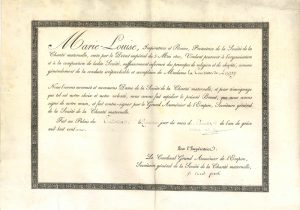 MARIE-LOUISE (1791-1847) Impératrice des Français, seconde femme de Napoléon Ier. P.S., Palais desTuileries 15 décembre 1811 ; contresignée par le cardinal Fesch, Grand Aumônier de l’Empire ; vélin oblong in-fol. en partie imprimé, avec...