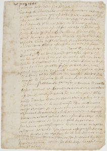 Très rare autographe faisant allusion à sa résidence forcée depuis la mort de François Ier.{CR}Anne de Pisseleu a copié le texte d’une déclaration de son frère Antoine de Pisseleu, seigneur de Heilly, au sujet d’une maladie dont elle avait été atteinte. Il représente que sa sœur la duchesse d’Étampes a souffert d’une double fièvre tierce et qu’elle a besoin de changer d’air pour se remettre, le lieu où elle se trouve étant trop « aquatic ». Antoine de Pisseleu s’engage à la ramener céans [au château de La Hardoynes ?] ou à Moncontour après son rétablissement…