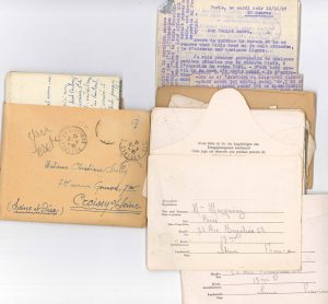 17 lettres adr. à un prisonnier de guerre en Allemagne, la plupart par sa femme à Paris, 1941-1943, sur papier de la Kriegsgefangenenpost, avec cachets de la censure du camp Stalag III B. – Procuration donnée par un détenu au centre pénitentiaire de Saint-Martin de Ré (1947). – 15 lettres d’un détenu à la prison d’Épinal à sa femme (1946-1948), et 4 l. à lui adressées. –12 lettres de Roger, interné pour faits de collaboration à Mauzac (Dordogne) puis Saint-Sulpice-la-Pointe (Tarn), à sa mère à Brunoy (1948-1949), avec qqs cachets de la censure, et une avant son procès demandant à un professeur à Paris de retrouver un certain « Leroy », résistant (Fresnes 1946) ; 6 lettres à la même dame d’un ami de Roger (Fresnes 1947-1949)... – 3 lettres d’une femme à son mari prisonnier, surnommé Poulot (1947). On joint une lettre d’un jeune homme replié dans la Haute-Vienne avec d’autres jeunes gens après la défaite (1940), et divers documents.