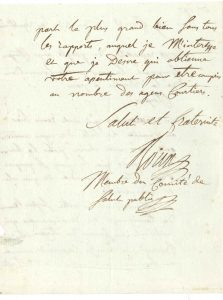 « Vos commissaires qui ont remis hier au Comité la liste des agens courtiers que vous avez choisis pour la bourse m’ont ajouté que le jury se propose d’en augmenter le nombre et que cela est indispensable. En abbandonnant à votre sagesse l’examen des temoignages et renseignemens qui militent en faveur du citoyen Catherine Bernard, je vous le recomande comme un homme dont on m’a dit de toutes par le plus grand bien »...
