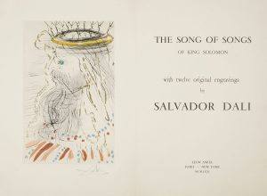 Belle édition du Cantique des cantiques en anglais, illustrée de 12 gravures originales en couleurs et rehaussées à l’or fin de SALVADOR DALI (1904-1989), toutes signées par l’artiste.