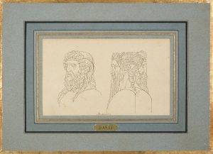 Les dessins ont été répartis selon leur valeur dans les exemplaires. Celui-ci est l’un des 79 numérotés de 16 à 94, le dessin y figurant est l’original de celui constituant la planche 16. Il s’agit de la représentation de Dionysos et Jupiter Ammon, portant la mention manus-ite : Villa Médicis. Dans la des-iption il est indiqué que ce dessin est proche de celui du musée du Louvre numéroté 3244.