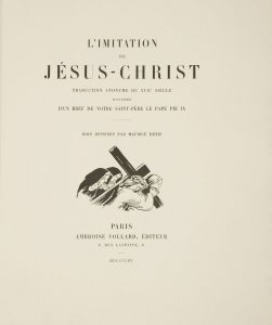 [DENIS (Maurice)].L’Imitation de Jésus-Christ traduction anonyme du XVIIe siècle honorée d’un bref de notre Saint-Père le Pape Pie IX. Paris : Ambroise Vollard, 1903. —