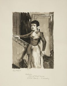 Un des 27 exemplaires contenant une suite avec remarques, une suite de 17 portraits et paysages formant un complément aux illustrations du livre, une suite de 10 planches d’essai et deux dessins originaux dont un au format des hors-texte. Chaque suite est protégée par une couverture illustrée.
