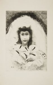Un des 230 sur pur fil Lafuma, illustrés de 2 gravures, dont une non signée sur la couverture et une à la page 1 de Denyse de Bravura, ainsi que de 30 planches sous serpente légendée de divers artistes, dont 5 lithographies originales (André PLANSON, André MARCHAND, René DEMEURISSE, Albert ANDRÉ, Henriette LE GRIX), 11 eaux-fortes originales (Louis VALTAT, Maurice SAVIN, Hélène MARRE, P.-E. CLAIRIN, André FRAYE, Maurice ASSELIN, Édouard GOERG, Edmond HEUÉ, Marie LAURENCIN, Suzanne TOURTE, Eugène CORNEAU), 12 pointes-sèches originales (Jean SERRIÈRE, TERECHKOVITCH, Robert LOTIRON, TOUCHAGUES, Camille BERG, André DERAIN, Valdo BARBEY, E. OTHON FRIESZ, Denyse de BRAVURA, Michel CIRY, -OTTI, Hermine DAVID) et 2 gravures originales au burin (Pierre DUBREUIL, Raymond HAASEN).