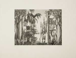 Album oblong 255 x 325. En feuilles, sous portefeuille avec couverture illustrée d’un texte orné et gravé à l’eau-forte en couleurs.