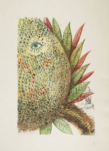 Superbe et monumentale édition, illustrée d’une aquarelle de SALVADOR DALI (1904-1989) reproduite en lithographie sur japon na-é, de 3 estampilles originales sur papier chiffon d’ÉTIENNE HADJU (1907-1966) et de 3 lithographies originales sur japon na-é de BERTO LARDERA (1911-1989). Chaque épreuve est signée par l’artiste.