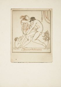 Cet ensemble est complété par 5 DESSINS ORIGINAUX ÉROTIQUES D’ANDRÉ LAMBERT, parmi lesquels celui de « L’Hésitation aux portes du Temple » dont on retrouve l’épreuve imprimée dans certains exemplaires du livre.