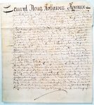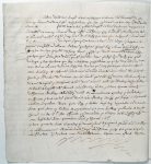 Cet héritage concerne des biens situés à Doullon, les Osches Guillettes, le Cloux Chantereau, le Cloux Puisselant, l'Osche Perruchet, le Cloux des Ances, etc.Bel acte sur parchemin de 55,7 x 31,8 cm..