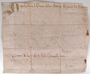 Belle pièce sur parchemin, incisé en vue du scellement, mais apparemment non scellé, de 53,5 x 64,5 cm.