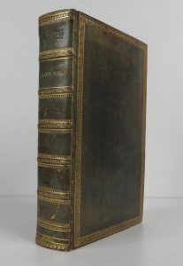 fort in-8° (23,8 x 16 cm.) de 3ff.- 883 pp.- 2 ff. rassemblant l'Ancien et le Nouveau Testament, soit 62.000 versets imprimés en caractères microscopiques sur deux colonnes.