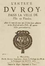 Toulouse - Impression de L’entrée du Roy dans la ville de l’Île en Flandre. Avec le nom de ceux qui se sont fait admirer en la prise de ladite Ville & autres belles particularitez. Tolose, Boude, 1667. 4 pp.