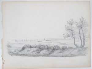 ENVIRON 70 DESSINS au crayon, à l'encre et au lavis d'auteurs divers, payasages et vues XIXe - XXesiècle.