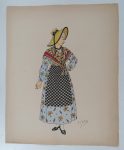 Émile GALLOIS, 1882-1965 - 7 dessins originaux en couleurs pour les "Costumes des Provinces françaises"