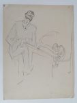 LOBEL-RICHE 1 desin original en sanguine signé & 2 dessins originaux, autoportraits en couleurs. .