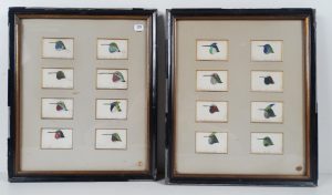 OISEAUX 8 planches contenant chacune 8 petits dessins aquarellés montrant différents aspects de la tête d'un même oiseau. Planches signées "A.B." et datées 1888.