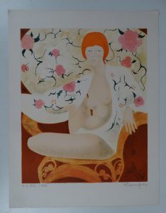 Alain BONNEFOIT Nu couché. Nu assis. 2 lithographies couleurs de