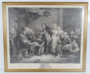 Jean-Jacques FLIPART, 1710-1782 "L'Accordée de Village", gravure d'après le tableau de GREUZE, 1770.
