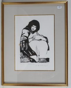 COUTEAU Geneviève 1924-2013 "A karditsa" Linogravure,