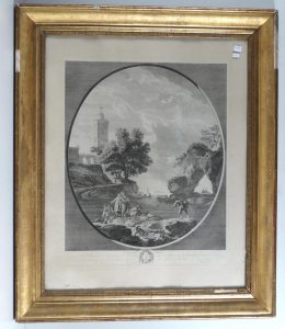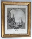 2 eaux-fortes à vue ovale en pendant (quelques piqures).